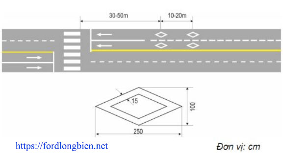 + Khi vạch này kẻ ở lề đường bên phải trước ngã 4 (đi kèm có mũi tên chỉ hướng đi) thì 2 ý kiến khác nhau về loại vạch này mà tôi thấy đều đúng: